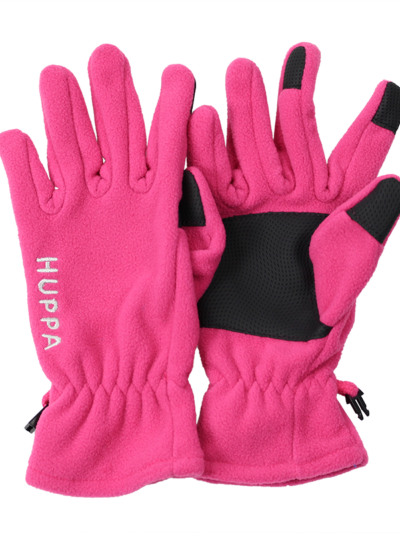 Children’s soft fleece gloves. Comfortable integrated elastic band on wrist. Non-slip elements in palm and on fingertips. A small clip keeps the gloves together between uses.