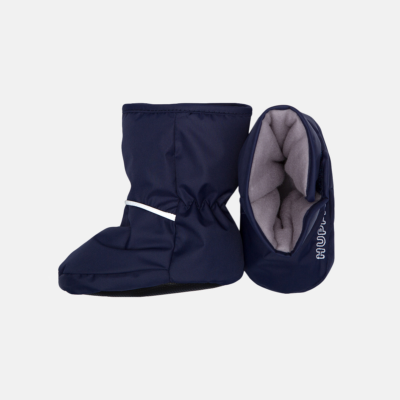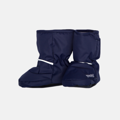 Babies’ soft waterproof and windproof lined booties. Breathable fabric. Cotton jersey inside. Reflective elements on fabric.