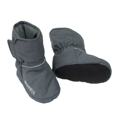 Babies’ soft waterproof and windproof lined booties. Breathable fabric. Cotton jersey inside. Reflective elements on fabric.