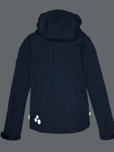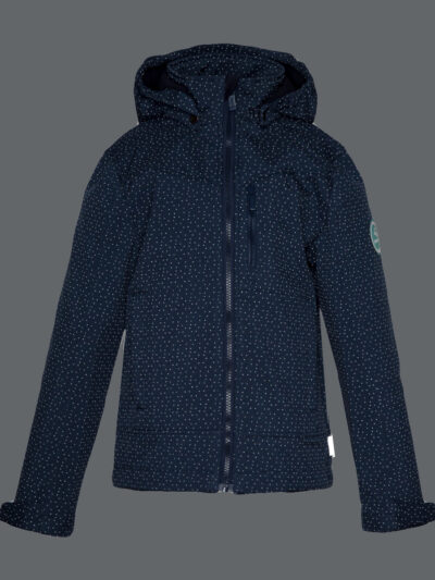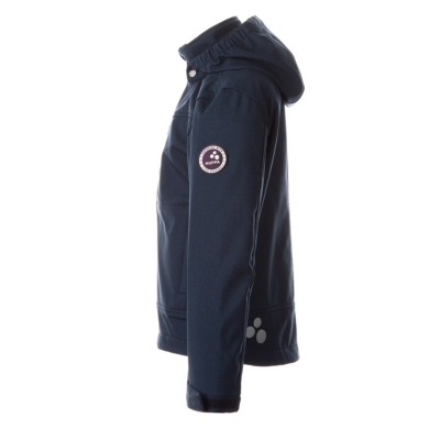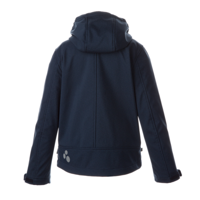 Children’s windproof Softshell jacket. Brushed soft on the inside. Integrated elastic band around the hood. Removable snap-on hood. Adjustable sleeve ends. Integrated zippered pockets. Adjustable drawstring tunnel at bottom. Reflective elements.