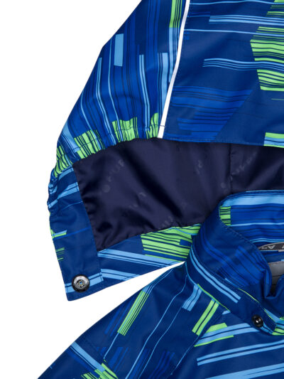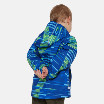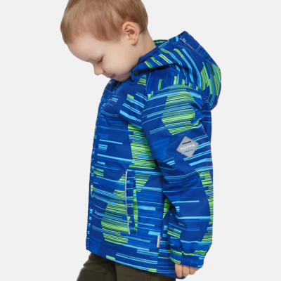 Insulated (40 g) water- and windproof jacket for boys, suitable for spring and autumn. The top layer of the jacket is made of a breathable material. The detachable hood can be attached to the collar with snap fasteners. The jacket has elasticated sleeve cuffs and hood. It is decorated with reflective details.