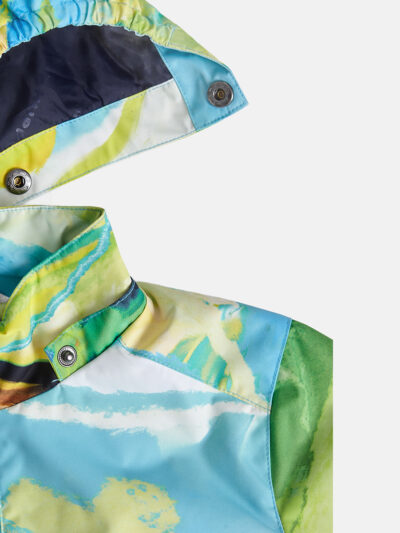 Insulated (40 g) water- and windproof jacket for boys, suitable for spring and autumn. The top layer of the jacket is made of a breathable material. The detachable hood can be attached to the collar with snap fasteners. The jacket has elasticated sleeve cuffs and hood. It is decorated with reflective details.