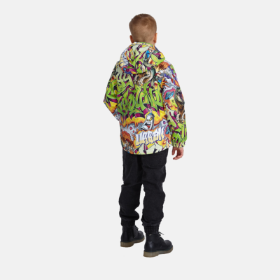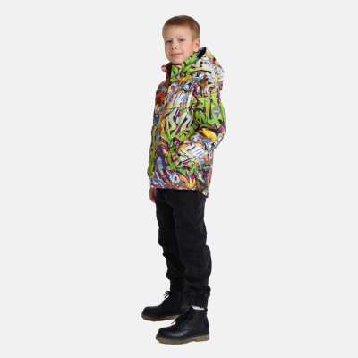 Insulated (40 g) water- and windproof jacket for boys, suitable for spring and autumn. The top layer of the jacket is made of a breathable material. The detachable hood can be attached to the collar with snap fasteners. The jacket has elasticated sleeve cuffs and hood. It is decorated with reflective details.