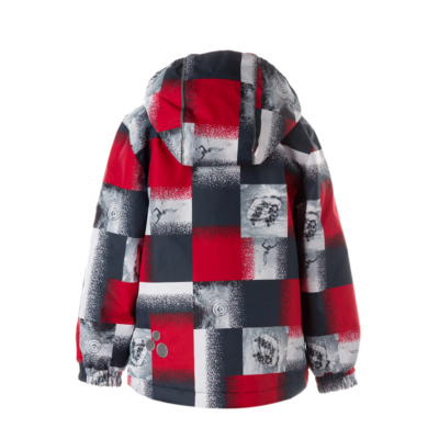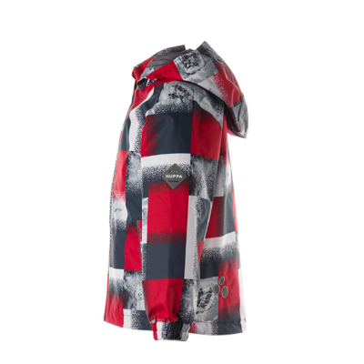 Insulated (100 g) water- and windproof jacket for boys, suitable for spring and autumn. The top layer of the jacket is made of a breathable material. The detachable hood can be attached to the collar with snap fasteners. The jacket has elasticated sleeve cuffs and hood. It is decorated with reflective details.
