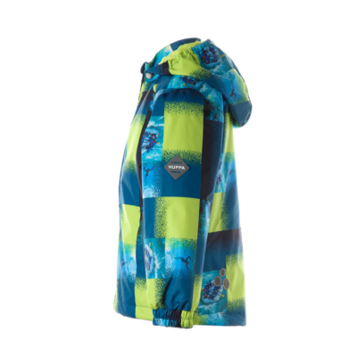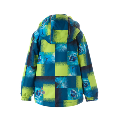 Insulated (100 g) water- and windproof jacket for boys, suitable for spring and autumn. The top layer of the jacket is made of a breathable material. The detachable hood can be attached to the collar with snap fasteners. The jacket has elasticated sleeve cuffs and hood. It is decorated with reflective details.