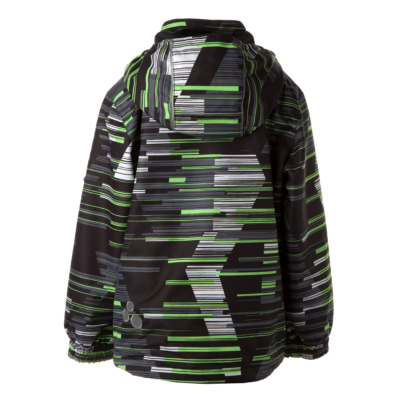 Insulated (100 g) water- and windproof between-seasons jacket for boys. The top layer of the jacket is made of a breathable material. The elasticated, detachable hood can be attached to the collar with snap fasteners. The jacket also has an elasticated waist and sleeve ends. It is decorated with reflective details.