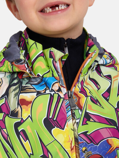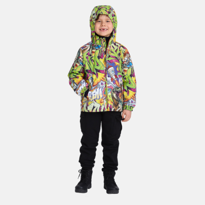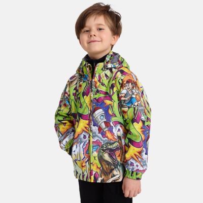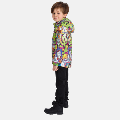 Insulated (100 g) water- and windproof jacket for boys, suitable for spring and autumn. The top layer of the jacket is made of a breathable material. The detachable hood can be attached to the collar with snap fasteners. The jacket has elasticated sleeve cuffs and hood. It is decorated with reflective details.