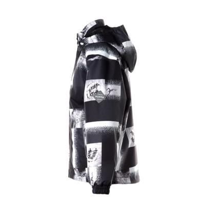 Insulated (40 g) water- and windproof jacket for boys, suitable for spring and autumn. The top layer of the jacket is made of a breathable material. The detachable hood can be attached to the collar with snap fasteners. The jacket has elasticated sleeve cuffs and hood. It is decorated with reflective details.