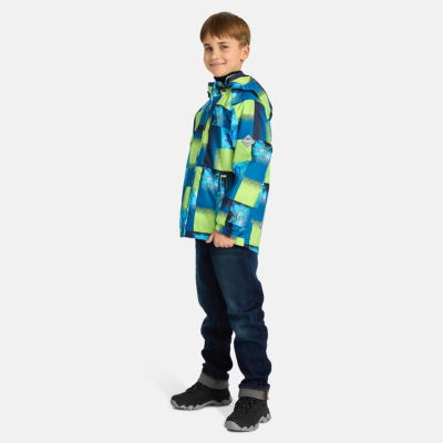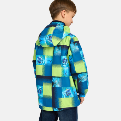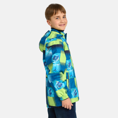 Insulated (40 g) water- and windproof jacket for boys, suitable for spring and autumn. The top layer of the jacket is made of a breathable material. The detachable hood can be attached to the collar with snap fasteners. The jacket has elasticated sleeve cuffs and hood. It is decorated with reflective details.