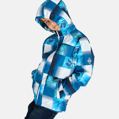 Insulated (40 g) water- and windproof jacket for boys, suitable for spring and autumn. The top layer of the jacket is made of a breathable material. The detachable hood can be attached to the collar with snap fasteners. The jacket has elasticated sleeve cuffs and hood. It is decorated with reflective details.