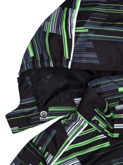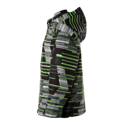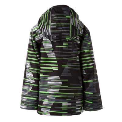 Children´s waterproof and windproof spring-autumn jacket. Breathable outer fabric. Rubber band incorporated at the edge of the hood. The removable hood attaches to the collar with press studs. Adjustable sleeve ends. Zipper fastener. Incorporated pockets on the front. Rubber band tunnel with stoppers incorporated at the bottom. Reflective details on the outer fabric.