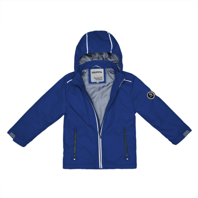 Children´s waterproof and windproof spring-autumn jacket. Breathable outer fabric. Rubber band incorporated at the edge of the hood. The removable hood attaches to the collar with press studs. Adjustable sleeve ends. Zipper fastener. Incorporated pockets on the front. Rubber band tunnel with stoppers incorporated at the bottom. Reflective details on the outer fabric.
