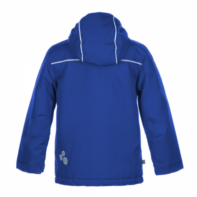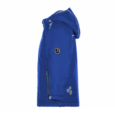Insulated (100 g) water- and windproof between-seasons jacket for kids. The outer fabric is breathable. There is a sewn-in elastic band in the hood. Adjustable sleeves. The detachable hood can be attached to the collar with snap-buttons. The outer fabric is decorated with reflective details.