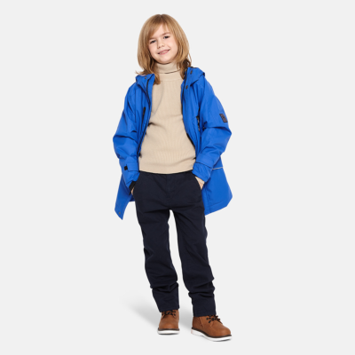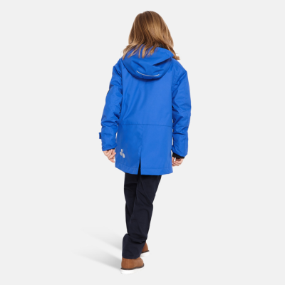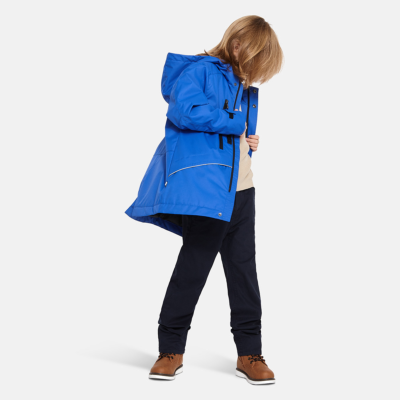 Insulated (40 g) water- and windproof parka for boys, suitable for spring and autumn. The top layer of the parka is made of a breathable material. It has an adjustable hood and ribbed sleeve cuffs. Integrated breast pockets with waterproof zippers. The parka also has waterproof, taped seams and is decorated with reflective details.