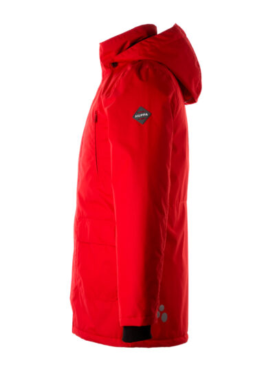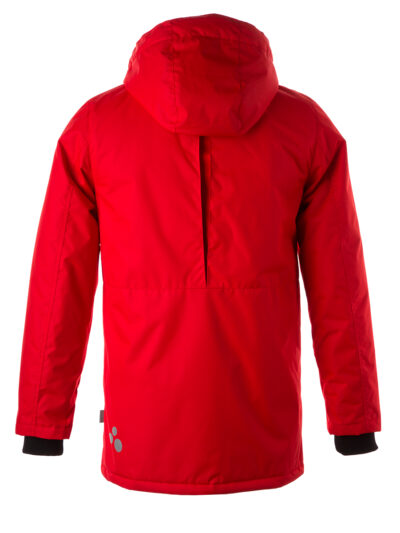 Insulated (140 g) water- and windproof between-seasons parka for boys. The top layer of the parka is made of a breathable material. The detachable hood can be attached to the collar with snap fasteners. It has ribbed sleeve cuffs. The parka has waterproof, taped seams and is decorated with reflective details.