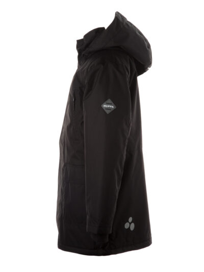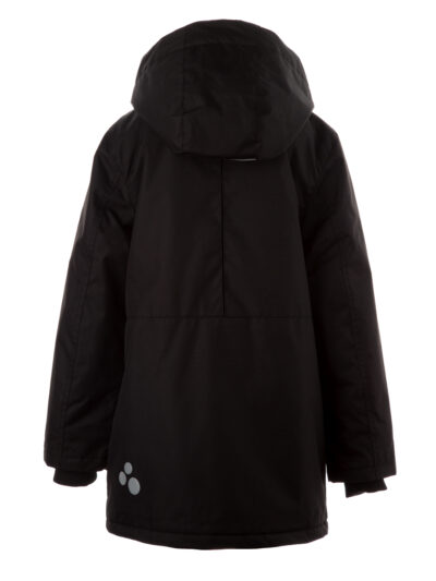 Insulated (140 g) water- and windproof between-seasons parka for boys. The top layer of the parka is made of a breathable material. The detachable hood can be attached to the collar with snap fasteners. It has ribbed sleeve cuffs. The parka has waterproof, taped seams and is decorated with reflective details.