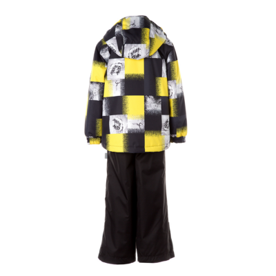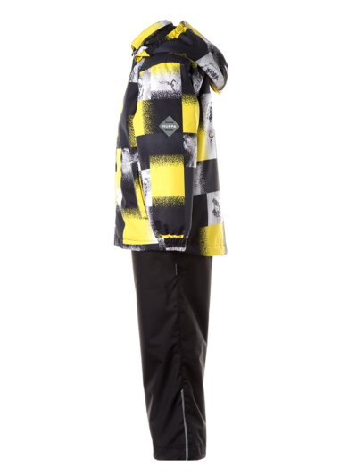 Children´s transition season jacket and pants set. Water- and windproof, breathable outer fabric. The inside of the jacket and trousers is made of soft lining fabric. Rubber band incorporated in the sleeve ends and the edge of the hood. The removable hood attaches to the collar with press studs. The trousers have a higher waist and adjustable elastic braces. incorporated rubber waistband. Rubber band tunnel with stoppers at the ends of the legs. Waterproof taped seat seam. The pants have no inseam on the leg. Both jackets and trousers have reflective details.