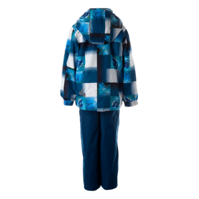 Children´s transition season jacket and pants set. Water- and windproof, breathable outer fabric. The inside of the jacket and trousers is made of soft lining fabric. Rubber band incorporated in the sleeve ends and the edge of the hood. The removable hood attaches to the collar with press studs. The trousers have a higher waist and adjustable elastic braces. incorporated rubber waistband. Rubber band tunnel with stoppers at the ends of the legs. Waterproof taped seat seam. The pants have no inseam on the leg. Both jackets and trousers have reflective details.