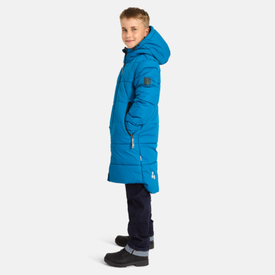 Children’s water- and windproof coat with 300 g insulation. Breathable outer fabric. Adjustable hood. Ribbed cuffs on sleeves. Front two-way zipper. Zipper pockets. Reflective detailing on outer fabric.