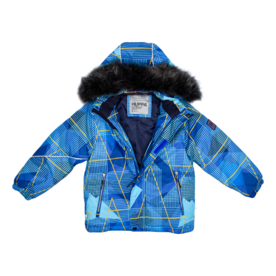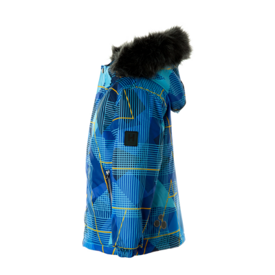 Children’s waterproof and windproof jacket. Breathable fabric. Soft mesh lining on the inside. Removable snap-on hood. Integrated elastic band at sleeve ends and on the waist. Zipper fastening Integrated zipper pockets at front. Removable faux fur trim on hood. Reflective elements on fabric.