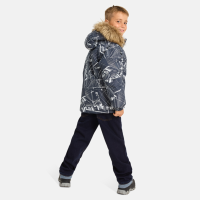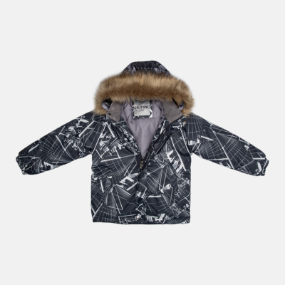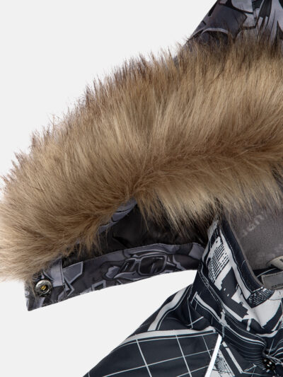 Children’s waterproof and windproof jacket. Breathable fabric. Soft mesh lining on the inside. Removable snap-on hood Integrated elastic band at sleeve ends. Zipper covered with stud-press flap at front. Integrated pockets at front. Faux fur trim on hood. Reflective elements on fabric.