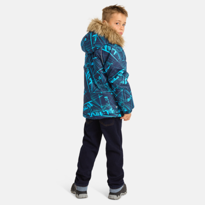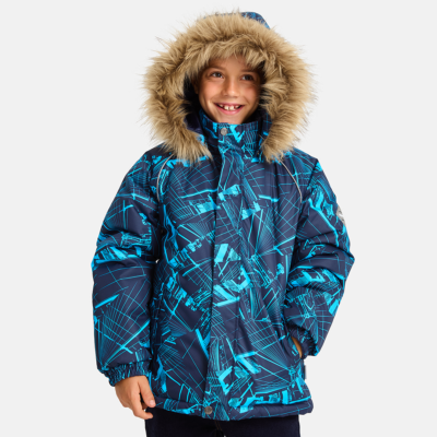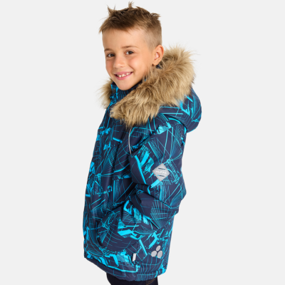 Children’s waterproof and windproof jacket. Breathable fabric. Soft mesh lining on the inside. Removable snap-on hood Integrated elastic band at sleeve ends. Zipper covered with stud-press flap at front. Integrated pockets at front. Faux fur trim on hood. Reflective elements on fabric.