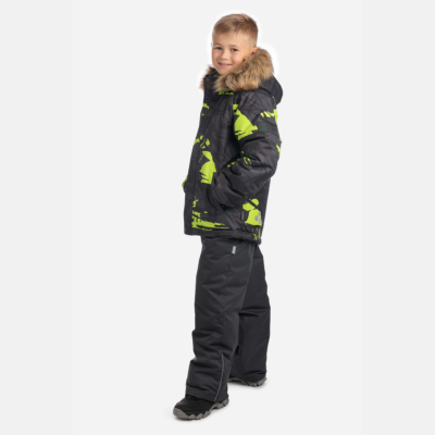 Children’s waterproof and windproof jacket. Breathable fabric. Soft mesh lining on the inside. Removable snap-on hood Integrated elastic band at sleeve ends. Zipper covered with stud-press flap at front. Integrated pockets at front. Faux fur trim on hood. Reflective elements on fabric.