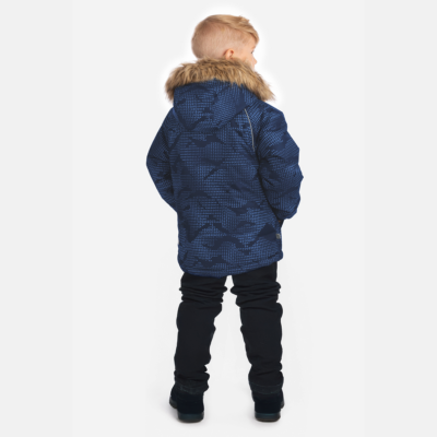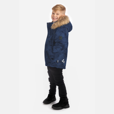 Children’s waterproof and windproof jacket. Breathable fabric. Soft mesh lining on the inside. Removable snap-on hood Integrated elastic band at sleeve ends. Zipper covered with stud-press flap at front. Integrated pockets at front. Faux fur trim on hood. Reflective elements on fabric.