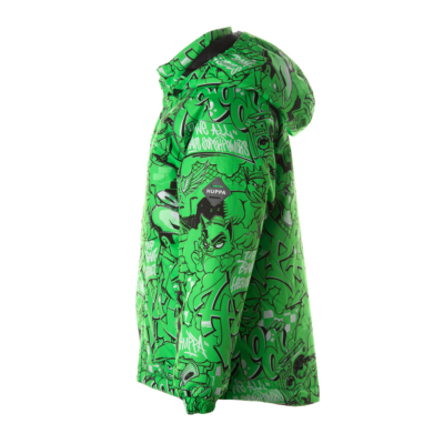 Children’s waterproof and windproof jacket. Breathable fabric. Soft mesh lining on the inside. Removable snap-on hood Integrated elastic band at sleeve ends. Zipper covered with stud-press flap at front. Integrated pockets at front. Reflective elements on fabric.
