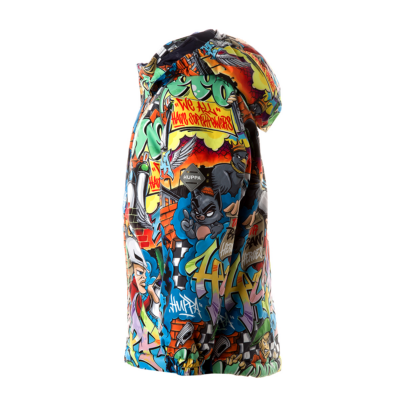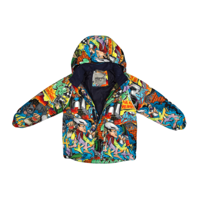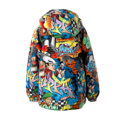 Children’s waterproof and windproof jacket. Breathable fabric. Soft mesh lining on the inside. Removable snap-on hood Integrated elastic band at sleeve ends. Zipper covered with stud-press flap at front. Integrated pockets at front. Reflective elements on fabric.
