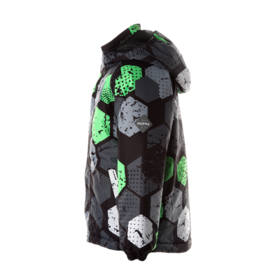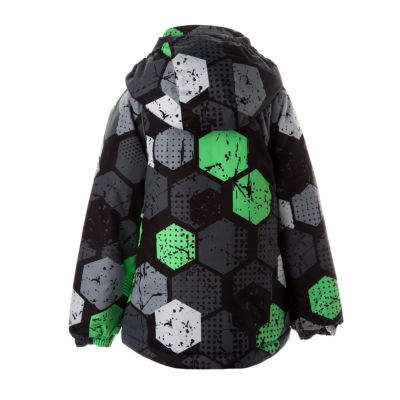 Children’s waterproof and windproof jacket. Breathable fabric. Soft mesh lining on the inside. Removable snap-on hood Integrated elastic band at sleeve ends. Zipper covered with stud-press flap at front. Integrated pockets at front. Reflective elements on fabric.