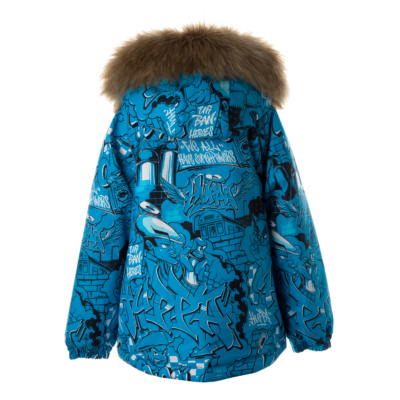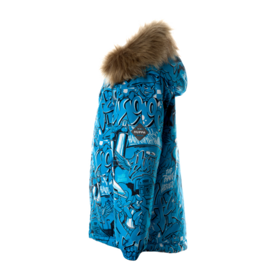 Children’s waterproof and windproof jacket. Breathable fabric. Soft mesh lining on the inside. Removable snap-on hood Integrated elastic band at sleeve ends. Zipper covered with stud-press flap at front. Integrated pockets at front. Faux fur trim on hood. Reflective elements on fabric.