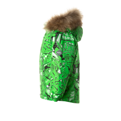 Children’s waterproof and windproof jacket. Breathable fabric. Soft mesh lining on the inside. Removable snap-on hood Integrated elastic band at sleeve ends. Zipper covered with stud-press flap at front. Integrated pockets at front. Faux fur trim on hood. Reflective elements on fabric.