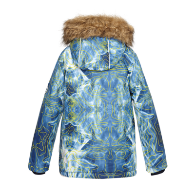 Boys´ winter jacket. Wind- and waterproof outer fabric and its insulation is 300g. For best visibility in the dark, the jacket has been equipped with reflective details. The ribbed inner cuffs on the sleeves keep the child warm and dry. The removable hood is safe - it is fastened with snaps to prevent it from getting caught, and its fur trim is also removable. The front pockets of the jacket are equipped with zippers.