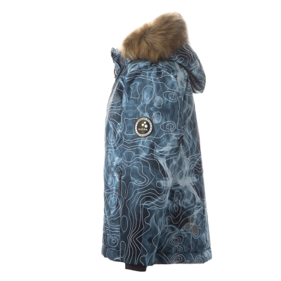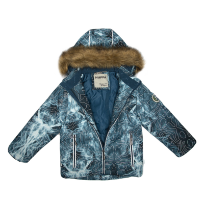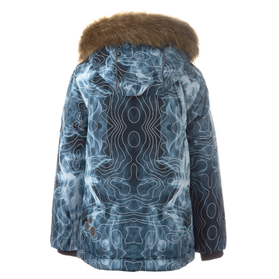 Boys´ winter jacket. Wind- and waterproof outer fabric and its insulation is 300g. For best visibility in the dark, the jacket has been equipped with reflective details. The ribbed inner cuffs on the sleeves keep the child warm and dry. The removable hood is safe - it is fastened with snaps to prevent it from getting caught, and its fur trim is also removable. The front pockets of the jacket are equipped with zippers.