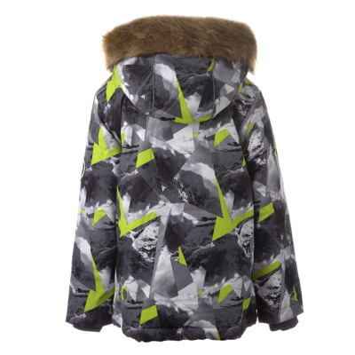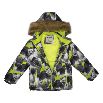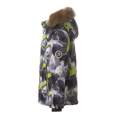 Boys´ winter jacket. Wind- and waterproof outer fabric and its insulation is 300g. For best visibility in the dark, the jacket has been equipped with reflective details. The ribbed inner cuffs on the sleeves keep the child warm and dry. The removable hood is safe - it is fastened with snaps to prevent it from getting caught, and its fur trim is also removable. The front pockets of the jacket are equipped with zippers.