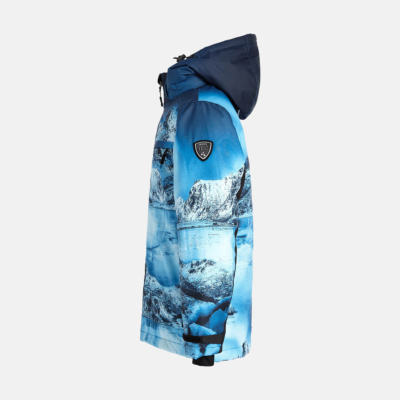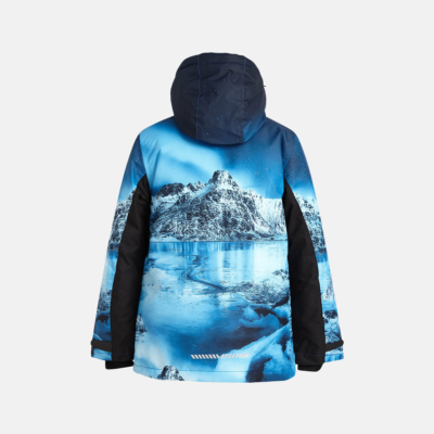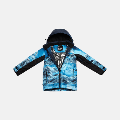 Children’s waterproof and windproof jacket. Breathable fabric. Soft mesh lining on the inside. Integrated adjustable elastic band around the hood and on the back. Waterproof zipper at front, zippered pockets. Adjustable sleeve ends. Cuffs with thumb holes at sleeve ends. Waterproof taped seams. Reflective elements on fabric.
