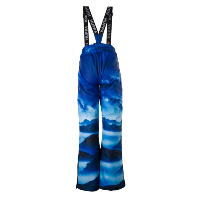 Children´s waterproof and windproof pants. Breathable fabric. Soft mesh lining on the inside of the pants. Adjustable removable braces. Adjustable waist. Integrated elastic band at the back of the waist. Integrated zippered pockets. Snow gaiters at leg ends. Zipper-adjustable leg end width. Waterproof taped seams. Reflective elements at the bottom.