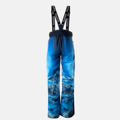 Children´s waterproof and windproof pants. Breathable fabric. Soft mesh lining on the inside of the pants. Adjustable removable braces. Adjustable waist. Integrated elastic band at the back of the waist. Integrated zippered pockets. Snow gaiters at leg ends. Zipper-adjustable leg end width. Waterproof taped seams. Reflective elements at the bottom.