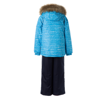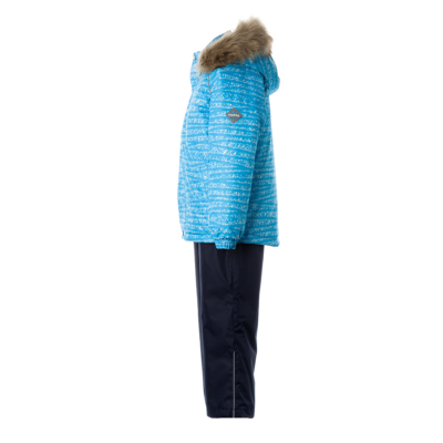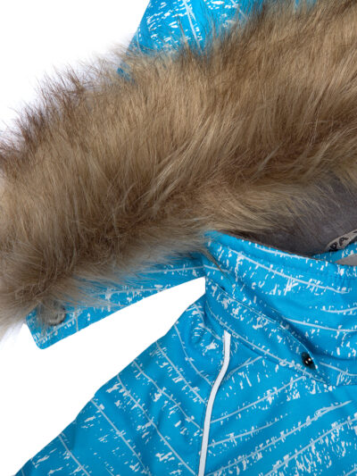 Children’s jacket and pants set. Waterproof, windproof and breathable fabric. Soft lining on the inside of the jacket and pants. Integrated elastic band at sleeve ends and on the waist. Removable snap-on hood. Faux fur trim on hood. The bib-pants have elastic adjustable suspenders. Integrated elastic band on waist. Drawstring tunnel with stoppers at leg ends. Waterproof taped seams. The pants have no inner leg seam. Reflective details on both jacket and pants.