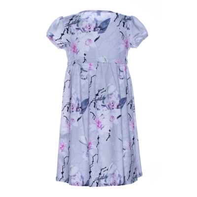 Girls´ dress with short sleeves. Material is 95% cotton, 5% elastane. Available in sizes 92-140.
