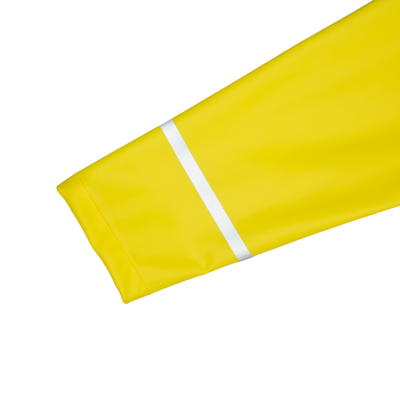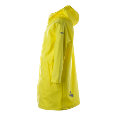 Kids´ water- and windproof rain coat. The coat has an elasticated hood. Welded seams keep the coat dry. It is decorated with reflective details.