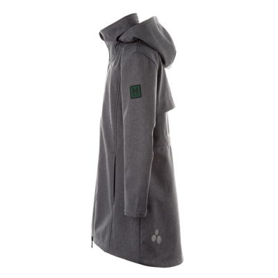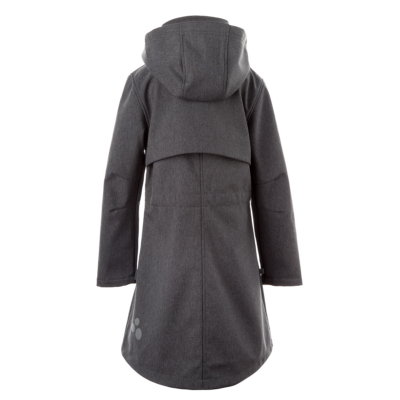 Girls´ windproof Softshell coat. The jacket has a dotted reflective pattern and an inner lining made of a brushed soft material. The hood can be set inside the collar. It has adjustable waist with stoppers.