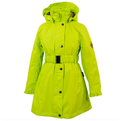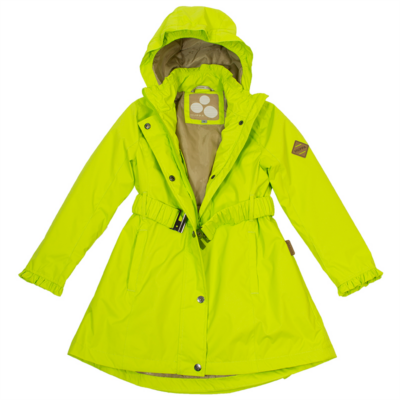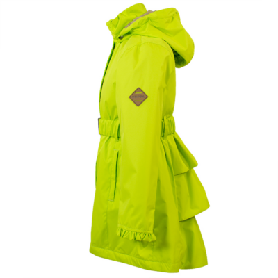 Children´s waterproof and windproof spring-autumn parka. Breathable outer fabric. The inside of the parka is made of soft lining fabric. Rubber band incorporated at the edge of the hood. Adjustable sleeve ends. Rubber band tunnel with stoppers on the waistline. The parka has a waterproof taped armhole and neck, hood, and shoulder seams. Reflective details on the outer fabric.