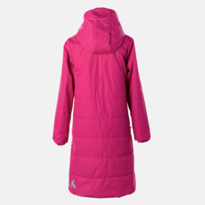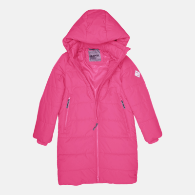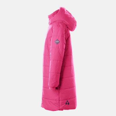 Insulated (100 g) water- and windproof between-seasons coat for girls. The top layer of the coat is breathable as well as water- and windproof. It has ribbed sleeve cuffs. The coat has a two-way zipper at the front and pockets with zippers. It is decorated with reflective details.