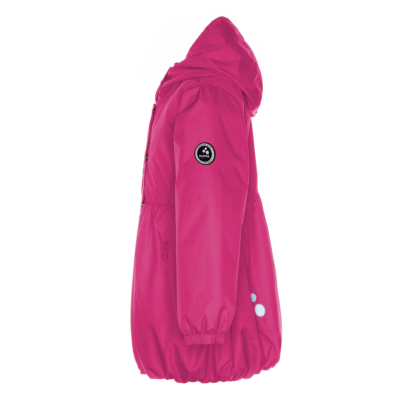 Children´s waterproof and windproof spring-autumn coat. Breathable outer fabric. The inside of the coat is made of soft lining fabric. Rubber band incorporated at the edge of the hood and at the ends of the sleeves. Zipper fastener. Front pockets with incorporated zippers. The coat has waterproof taped shoulder seams. Reflective details on the outer fabric.