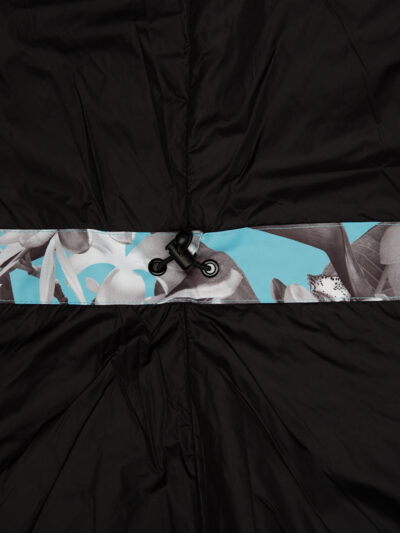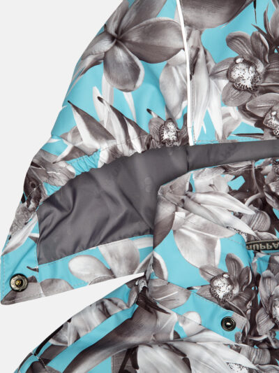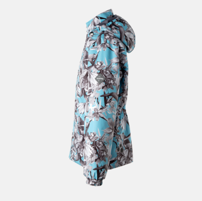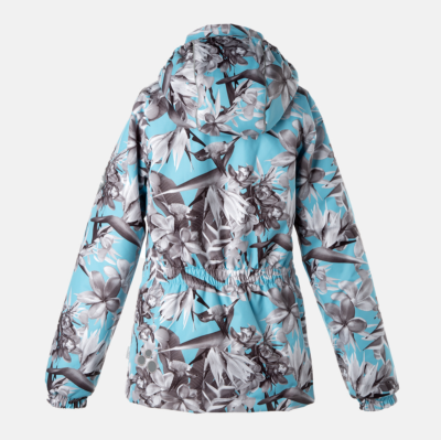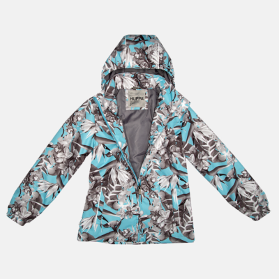 Children´s waterproof and windproof jacket. Breathable outer fabric. Rubber band incorporated in the sleeve ends, hood edge, and back waist. The removable hood attaches to the collar with press studs. Reflective details on the front and back.
