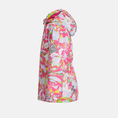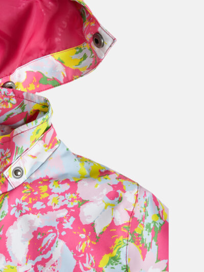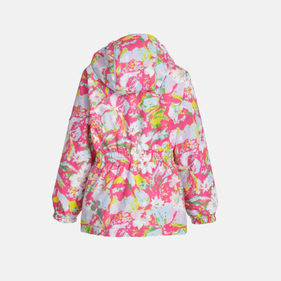 Children´s waterproof and windproof jacket. Breathable outer fabric. Rubber band incorporated in the sleeve ends, hood edge, and back waist. The removable hood attaches to the collar with press studs. Reflective details on the front and back.