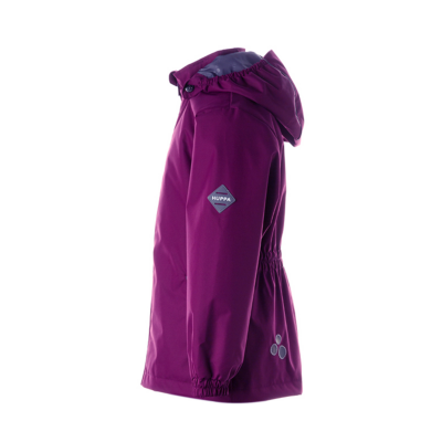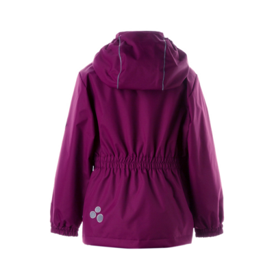 Children´s waterproof and windproof jacket. Breathable outer fabric. Rubber band incorporated in the sleeve ends, hood edge, and back waist. The removable hood attaches to the collar with press studs. Reflective details on the front and back.
