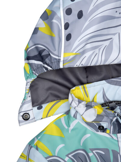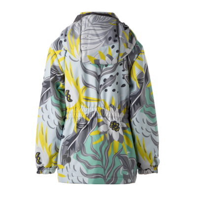 Children´s waterproof and windproof jacket. Breathable outer fabric. Rubber band incorporated in the sleeve ends, hood edge, and back waist. The removable hood attaches to the collar with press studs. Reflective details on the front and back.